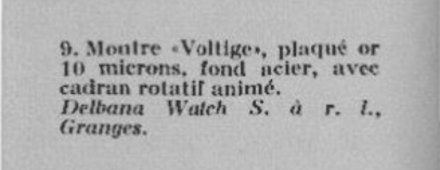 „Zaprojektowany przez artystów i rzemieślników, aby przyciągać uwagę i cieszyć oko…, tak też jest w przypadku zegarka Delbana – Voltige, który oprócz dobrego mechanizmu na 17 kamieniach z zabezpieczeniem Incabloc ma także nowatorską animowaną tarczę obrotową.”